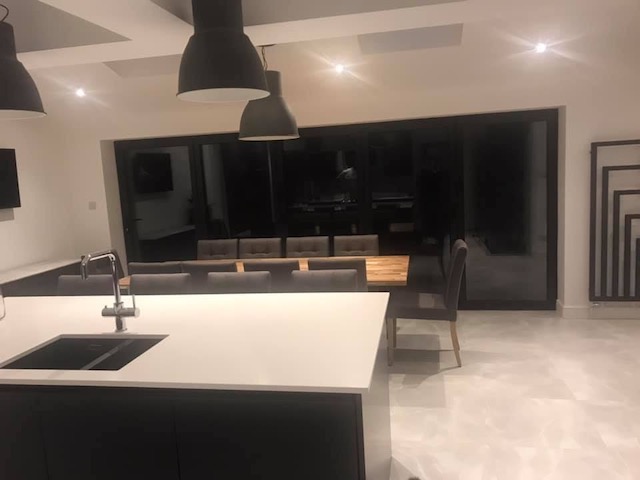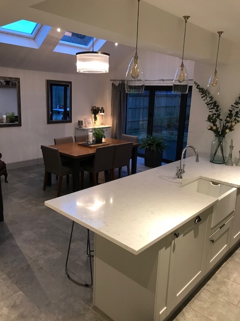 Thank you for our fabulous new open plan kitchen diner, for figuring out a way to hide the steel in the ceiling, for always being tidy and for taking care to provide a high quality finish.
